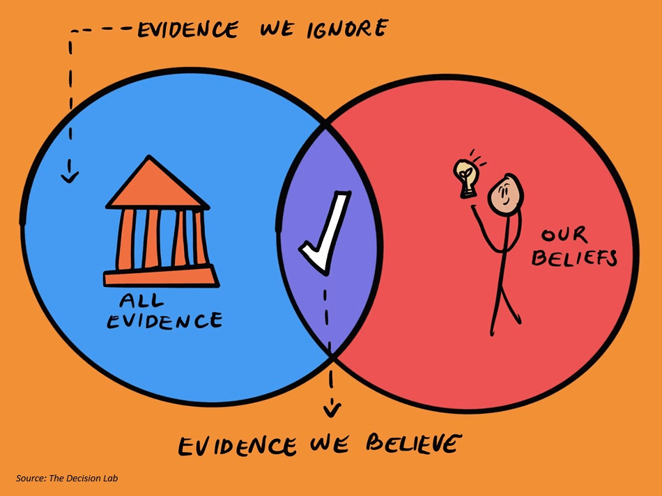 Confirmation bias is a deeply human tendency to favor evidence that supports what we already believe while ignoring or downplaying evidence that contradicts it, even when the consequences are expected to be terrible. In simple words, it’s like wearing special glasses that only let us see what we want to see. When we believe something, our brain naturally looks for information that proves we’re right and ignores anything that suggests we might be wrong. There are numerous ways this negatively impacts us with investing.