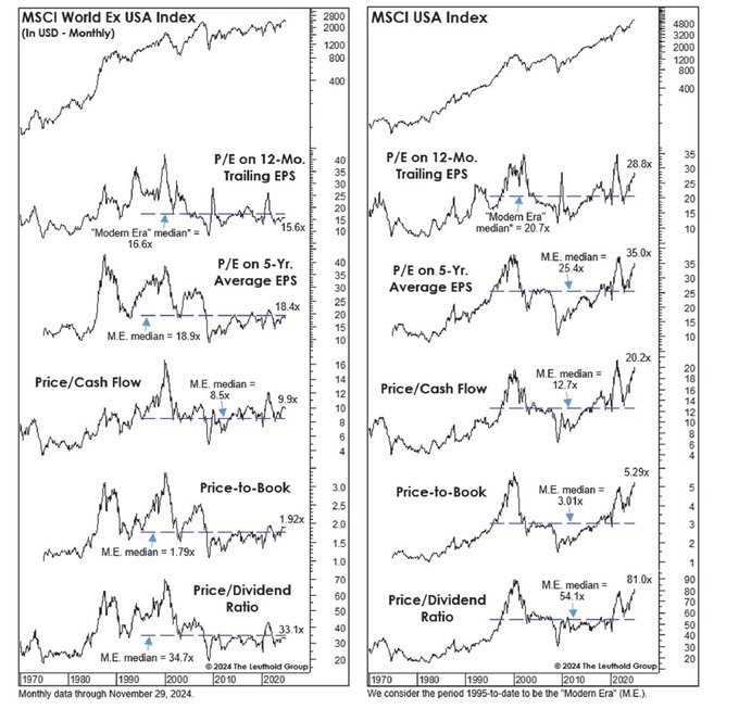 No matter how you measure it, foreign stocks trade at half the valuation of US stocks: