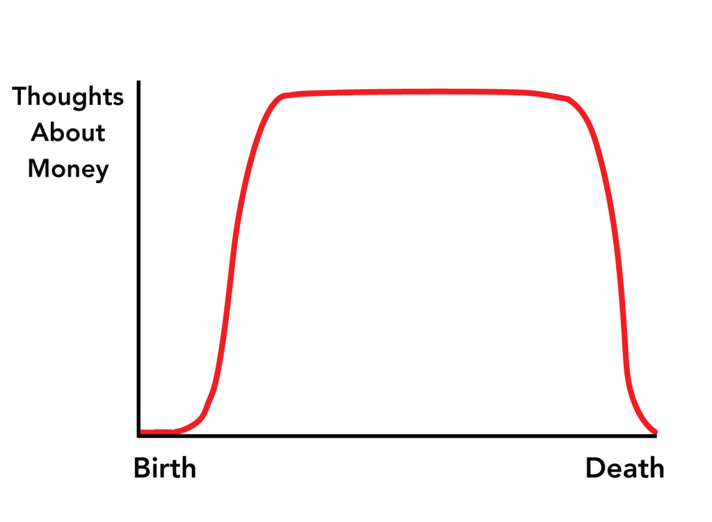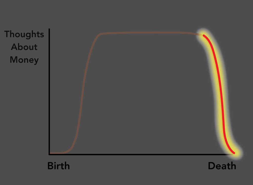 Money is a required pursuit for life, but a pointless pursuit upon death. If I were to illustrate what this tension looks like for your average person, it would look something like this: